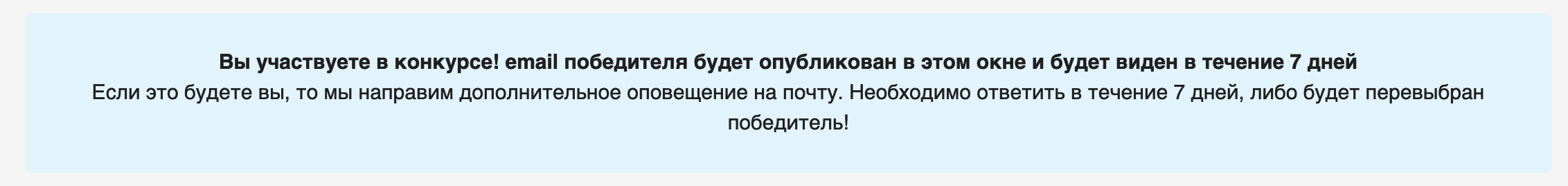 Победителю необходимо забрать подарок в профиле в течение 7 дней после окончания конкурса